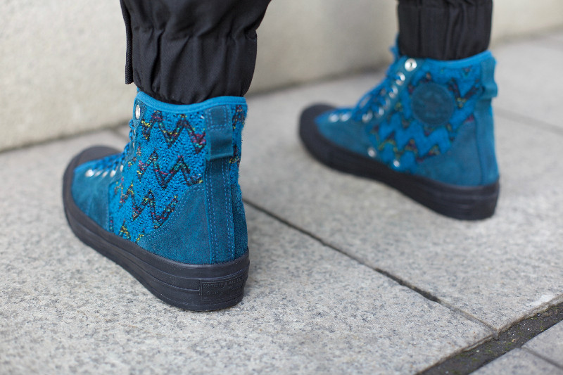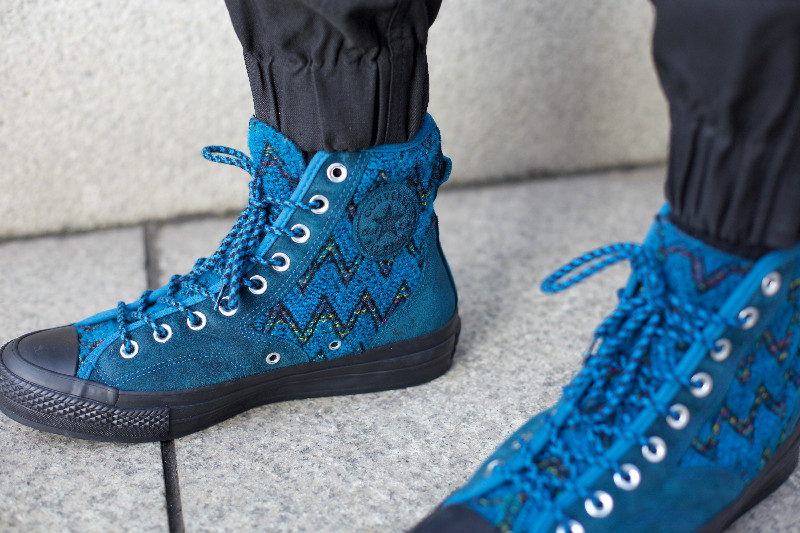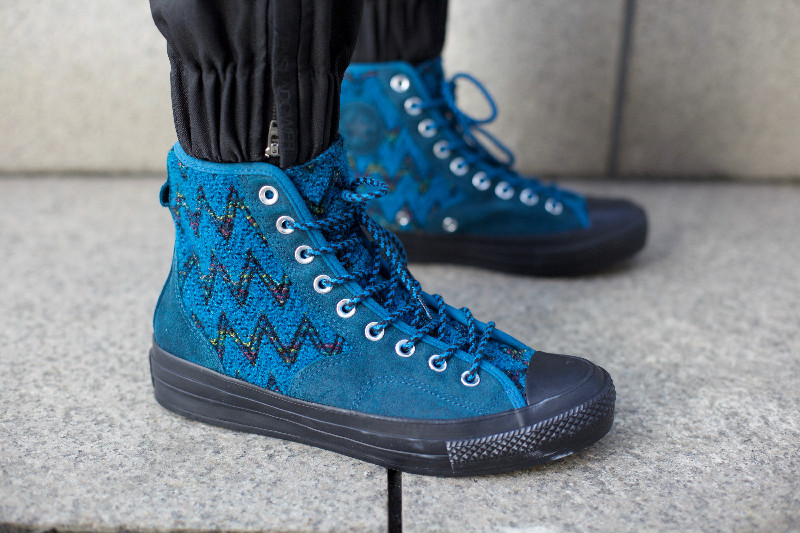 这款 Chuck Taylor All Star 70 Hiker Hi 是意大利顶级针织奢侈品牌 Missoni 与 Converse 推出的联名款。在结合经典的 CTAS 70 Hiker Hi 款式上,运用了 Missoni 最著名的“之”字型针织布料搭配牛皮二层革制作成鞋面,弹性橡胶底,防滑耐磨,经久耐穿。