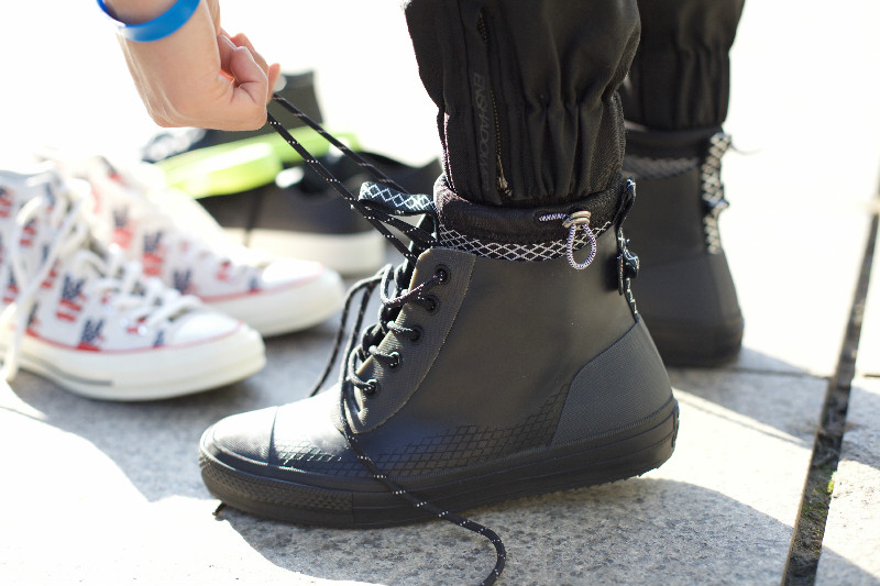 经典 Chuck Taylor All Star II Thermo-Boot 款,鞋面采用人造合成橡胶材质面料,起到防水作用,全掌内靴鞋口处还配有缩口设计。鞋带、鞋口和鞋提都配有 3M 反光材质,鞋垫选用 Lunarlon 技术设计,配以冲穿孔仿麂皮衬里,在表达质感的同时又兼顾了舒适!