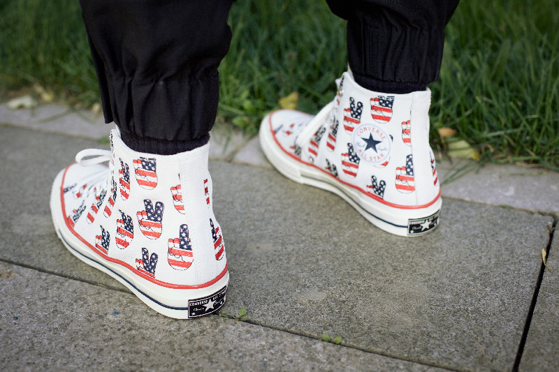 话题之作 70 年代的复刻款,鞋面运用了优质翻毛皮材质,结合竞选日图案设计。拥有更强韧耐用的鞋带,沿用至今的复古大鞋舌,略厚的橡胶底和舒适海绵鞋垫细节,带出浓郁美国风的同时也是匡威的品牌象征。