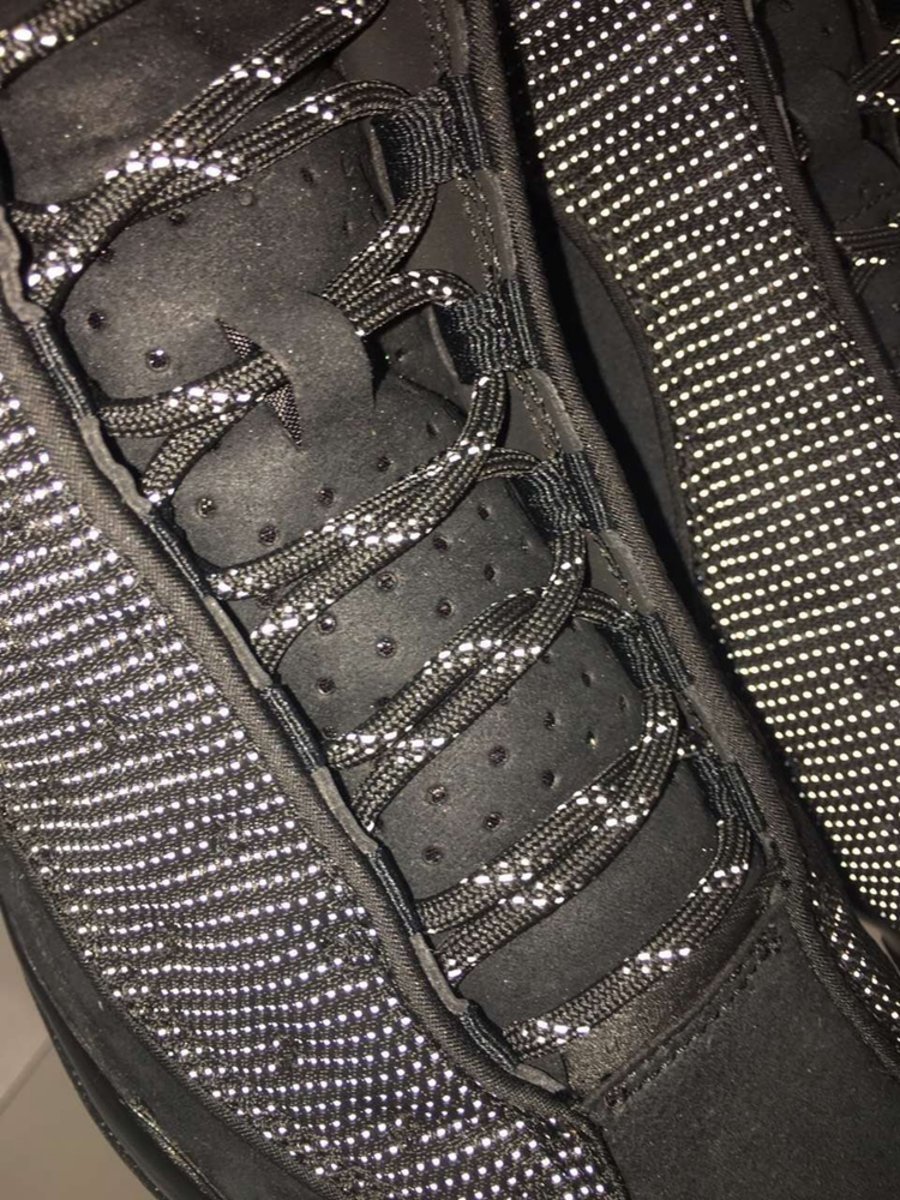 鞋身采用全黑磨砂皮革搭配 3M 反光网面与鞋带呈现,全息图像的豹眼点缀尤为醒目,亮黑色中底则与黑胶外底相互帮衬,完美诠释出“黑猫”隐蔽的灵动杀气。