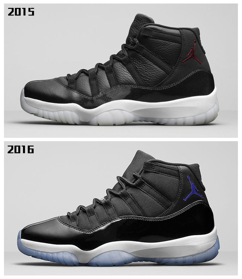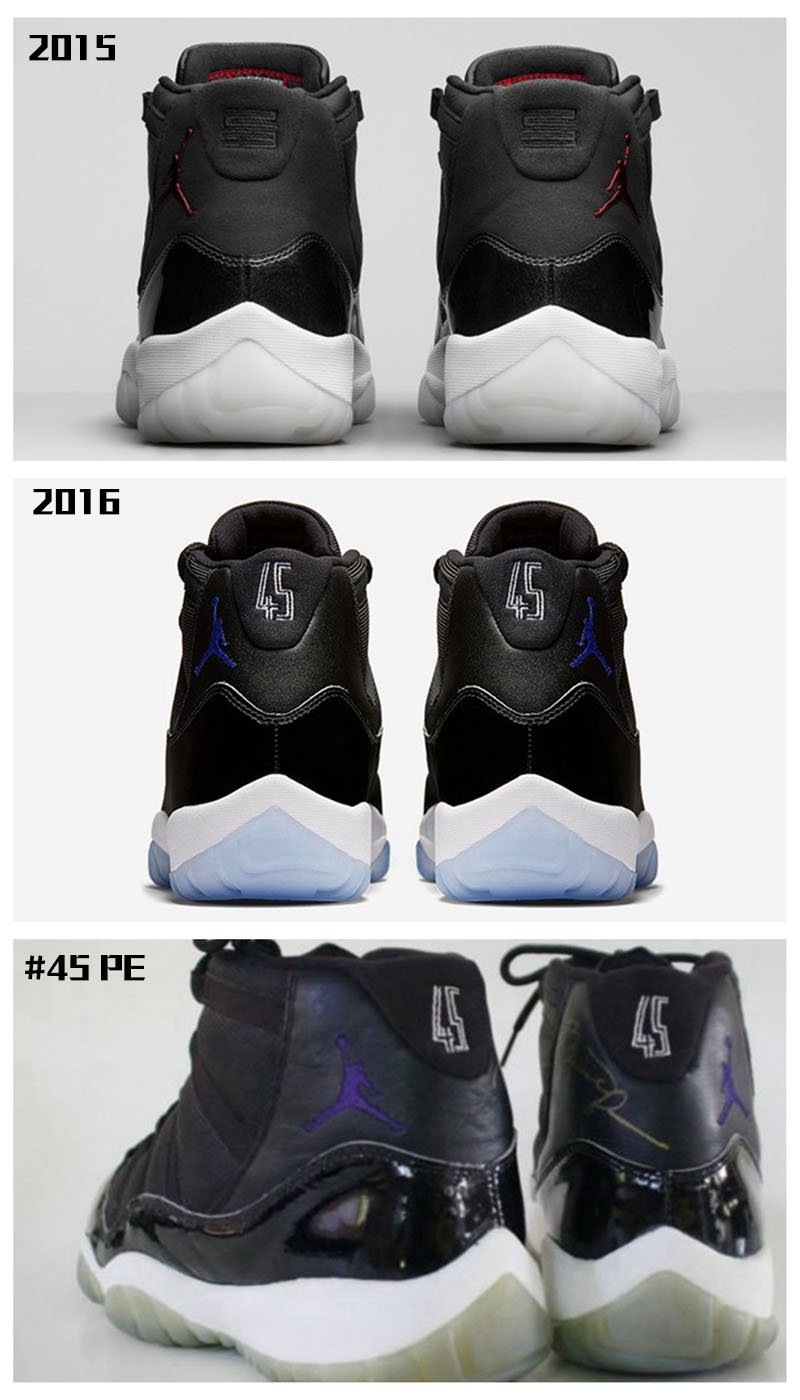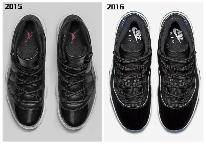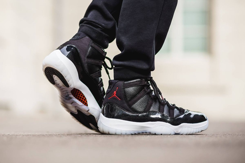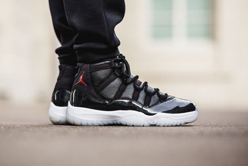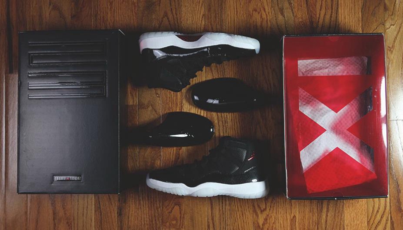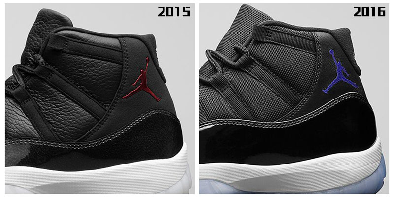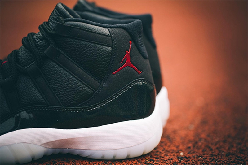 Air Jordan 11 “72-10” 为了营造出辉煌霸气的质感,创新的采用了含有亮粉点缀的漆皮材质搭配手感出众的荔枝皮呈现,而今年即将上市的“大灌篮”配色则忠于乔丹当年亲着的版本,加大了黑色漆皮的覆盖面积,比延续了轻量化的尼龙鞋身设计。