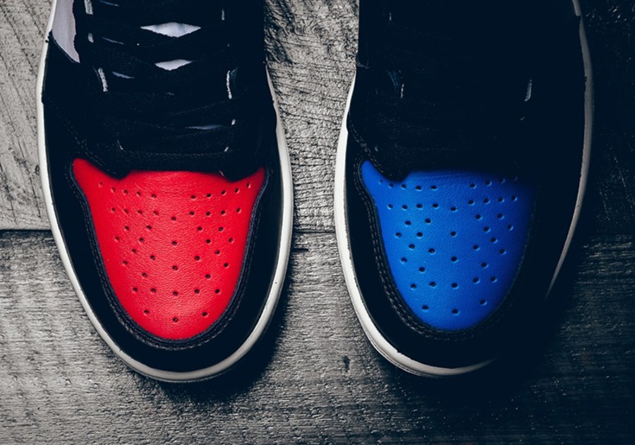 从配色名称就可以看出,Royal 蓝黑、Chicago 白黑红和 Bred 黑红三位一体,三款的经典元素融合,打造出这双蓝红鸳鸯的全新配色!独特的融合设计吸睛指数自然破表。