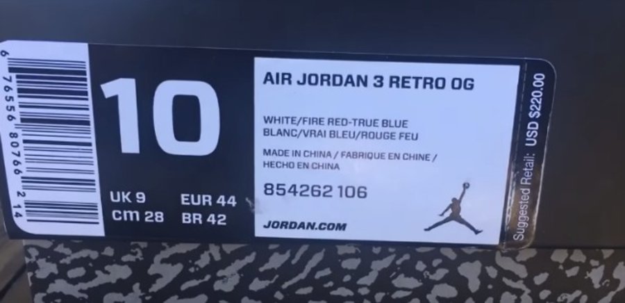 2016:名字为 Air Jordan 3 Retro OG,货号为 854262 106