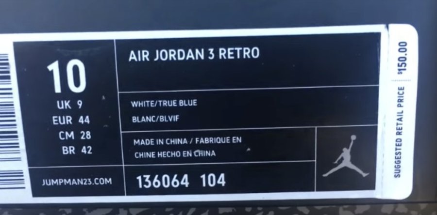 2011:名字为 Air Jordan 3 Retro,货号为 136064 104