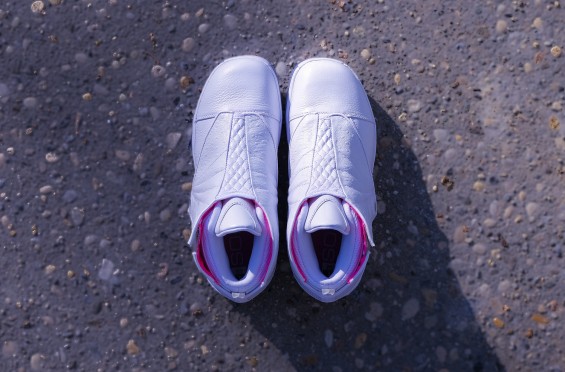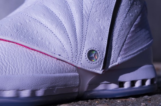 这双 SoleFly x Air Jordan 16 “Art Basel” 以纯白色为主,搭配南海岸配色细节,青春中带有一丝活泼,活泼中带有一丝骚气。鞋盖上采用纯白色鸵鸟皮质,并配有全息配色的 Jumpman Logo 与 SoleFly Logo。