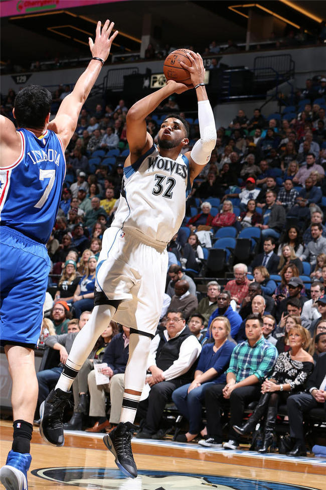 卡尔-安东尼·唐斯 2015 年以选秀状元身份进入 NBA,新秀赛季全票当选最佳新秀并入选最佳新秀阵容第一阵容。生于 1995 年的他看成是“老狼王”加内特的接班人,拥有柔和的手感与十足的野性成为新狼头。