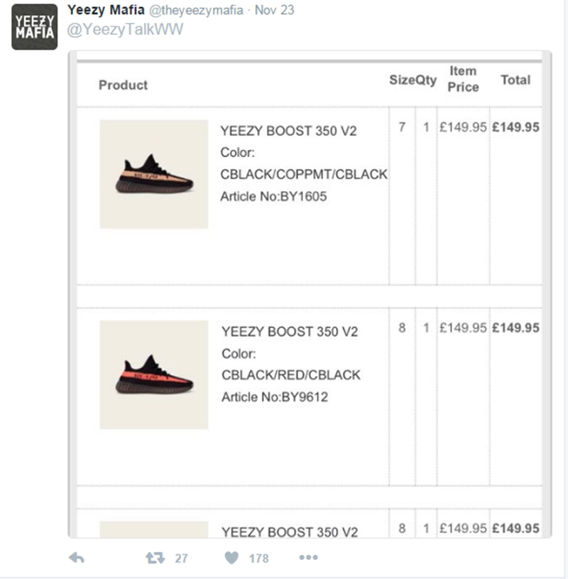 其实他们比我们大部分人都要勤劳,在 Yeezy 350 Boost V2 发售期间,他们拒绝使用抢鞋 Bot,而是通过团队内部的协作,来进行 24 小时不间断地全球官网抢购。在被问到为何不使用更为简单粗暴的抢鞋 Bot,他们则回答:“当你用了抢鞋 Bot 之后,就好比在比赛中使用了兴奋剂,以后再也无法摆脱”。至于如何能够得到关于 Yeezy 的超前资讯,他们表示这是团队的秘密。