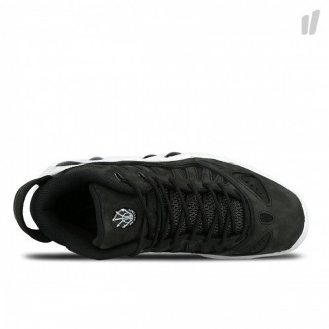 该鞋采用黑色麂皮鞋身,搭配白色中底及外底呈现,全掌 Air Max 不仅保证了优异的换阵性能,更带来了更为强烈的视觉冲击。夸张的上翻中底,辅以亮黑色 TPU 点缀,沉稳之余又不失灵动的细节,彰显出上世纪 Nike Basketball 天马行空的设计语言。