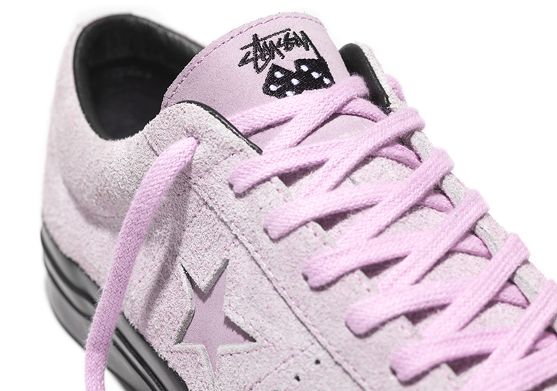今季的 Stussy x Converse One Star 74 Collection 的鞋面采用了反毛皮材质,分别以黑色,绿色与淡紫色呈现,与黑色的中底搭配带来复古的视觉体验。鞋舌上分别印有 Stussy 标志性的皇冠、骰子和经典 8 球图案,辨识度相当高。本次联名细节满满的同时颇又显街头质感。