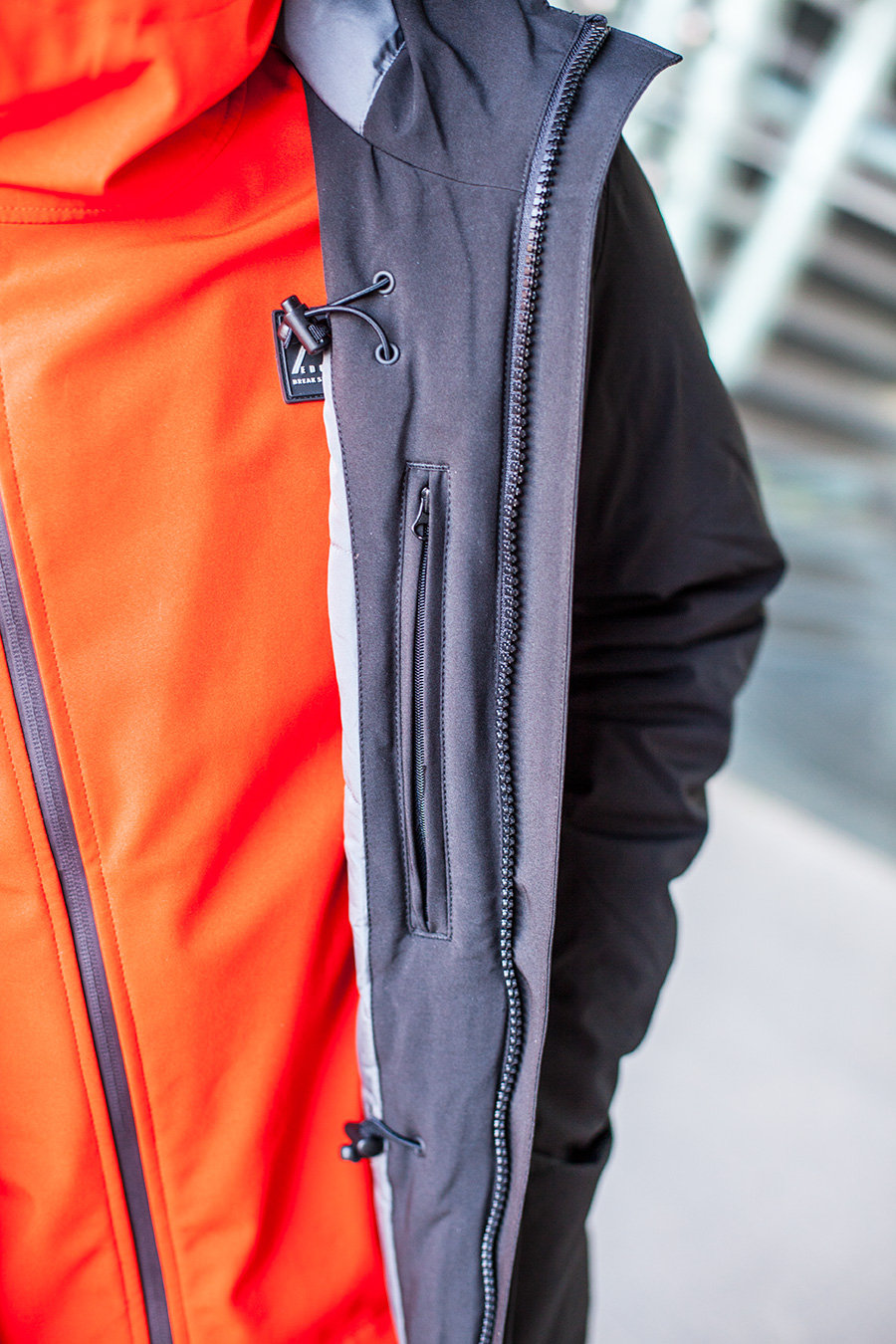 可以 3D 多方位调节的风帽、隐藏的胸兜、带有拉链的内兜,诸多的细节都是标准的户外规格。