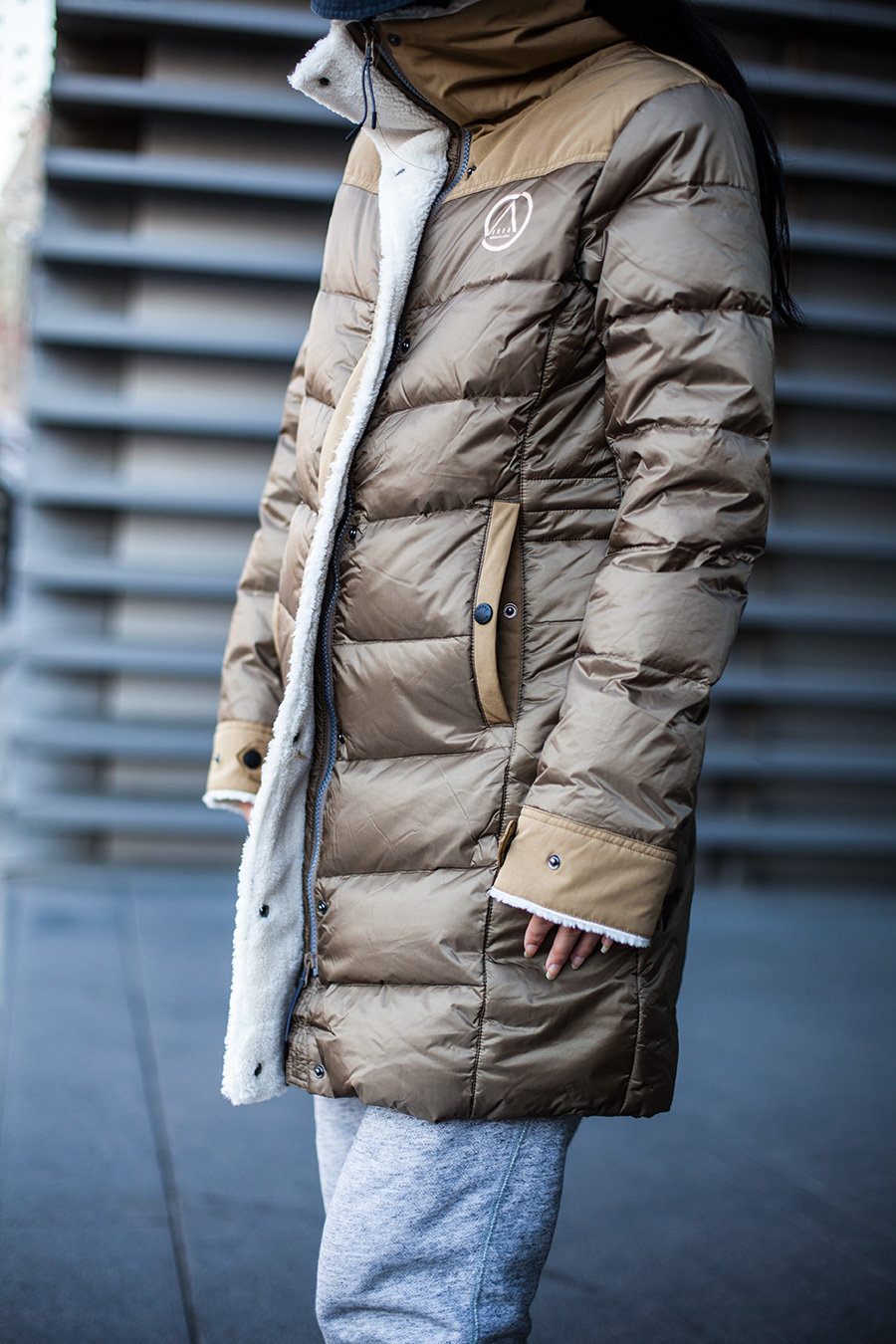 妹子小编的 “御寒神器”!这件长款的羽绒服不仅采用了羽绒填充,从衣领延伸到衣襟都有羊剪绒的覆盖,看着就暖和!