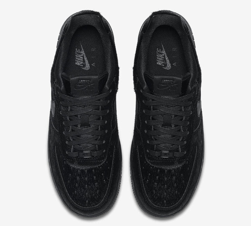 眼前这款全新 Air Force 1 以 “Triple Black” 主题呈现,鞋面更是采用了马毛材质,低调的外表并不能掩盖住这双 Air Force “Pony Hair” 优异的质感。
