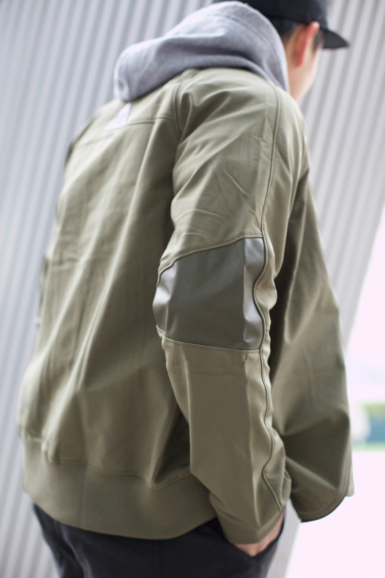 采用了特氟龙涂层面料,内里加绒更具保暖效果。衣面具有防泼水、防污渍功能,透气性与保暖性也极其出色。肘部使用哑光 PU 材料,不仅柔软而且非常耐磨。所有拉链均采用压胶设计,不仅可以挡风,还能防水。
