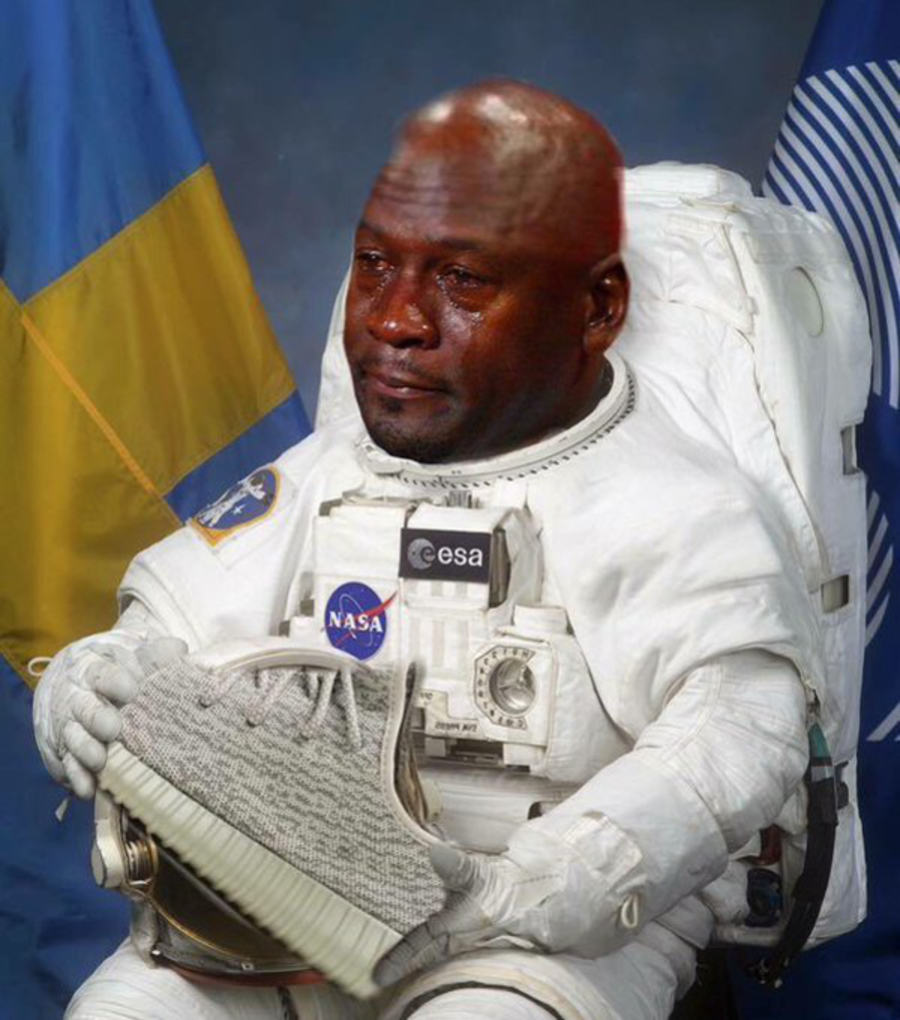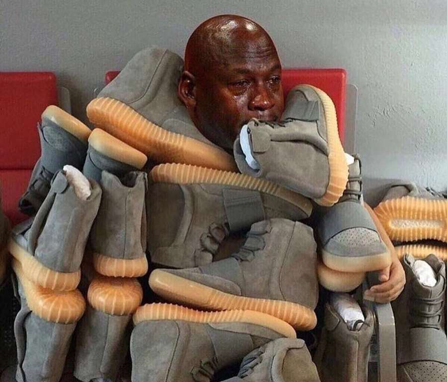 “Crying MJ” 哭泣的乔帮主这个表情包还在不断的升级中,特别是在欧美地区,几乎每个热点网络事件,都能看到这个熟悉的表情! 更有人是替换了 Air Jordan 8 的毛巾鞋舌,以同款表情呈现,趣味十足! 面对这样被玩坏,想必乔帮主本人应该会一笑置之,不会往心里去的!