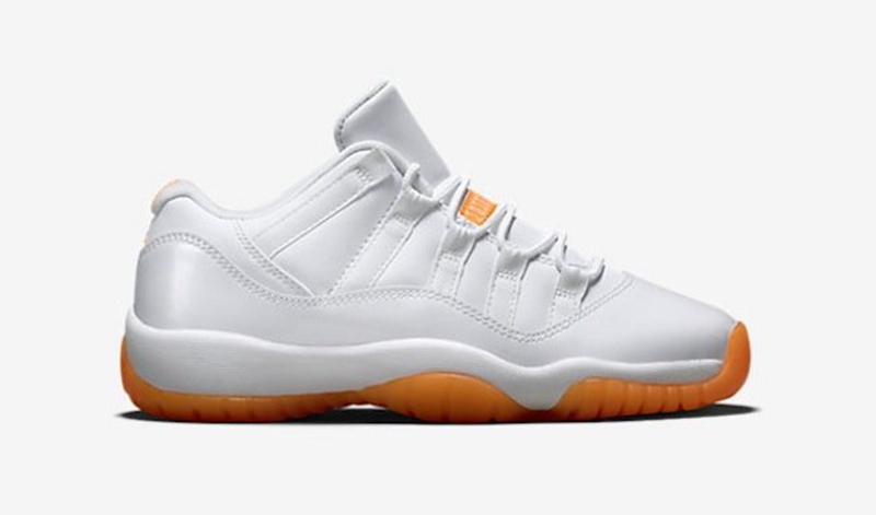 首发于 2001 年的女版 Air Jordan 11 Low “Citrus”,以洁白的鞋身搭配活力的橘色外底,动感的色彩对撞带来更为迷人的青春气息。该鞋于 2015 年 6 月 20 日再次复刻登场,虽设定为 GS 版本,但尺码最大上限为 43,男鞋迷有勇气的话也可尝试驾驭。