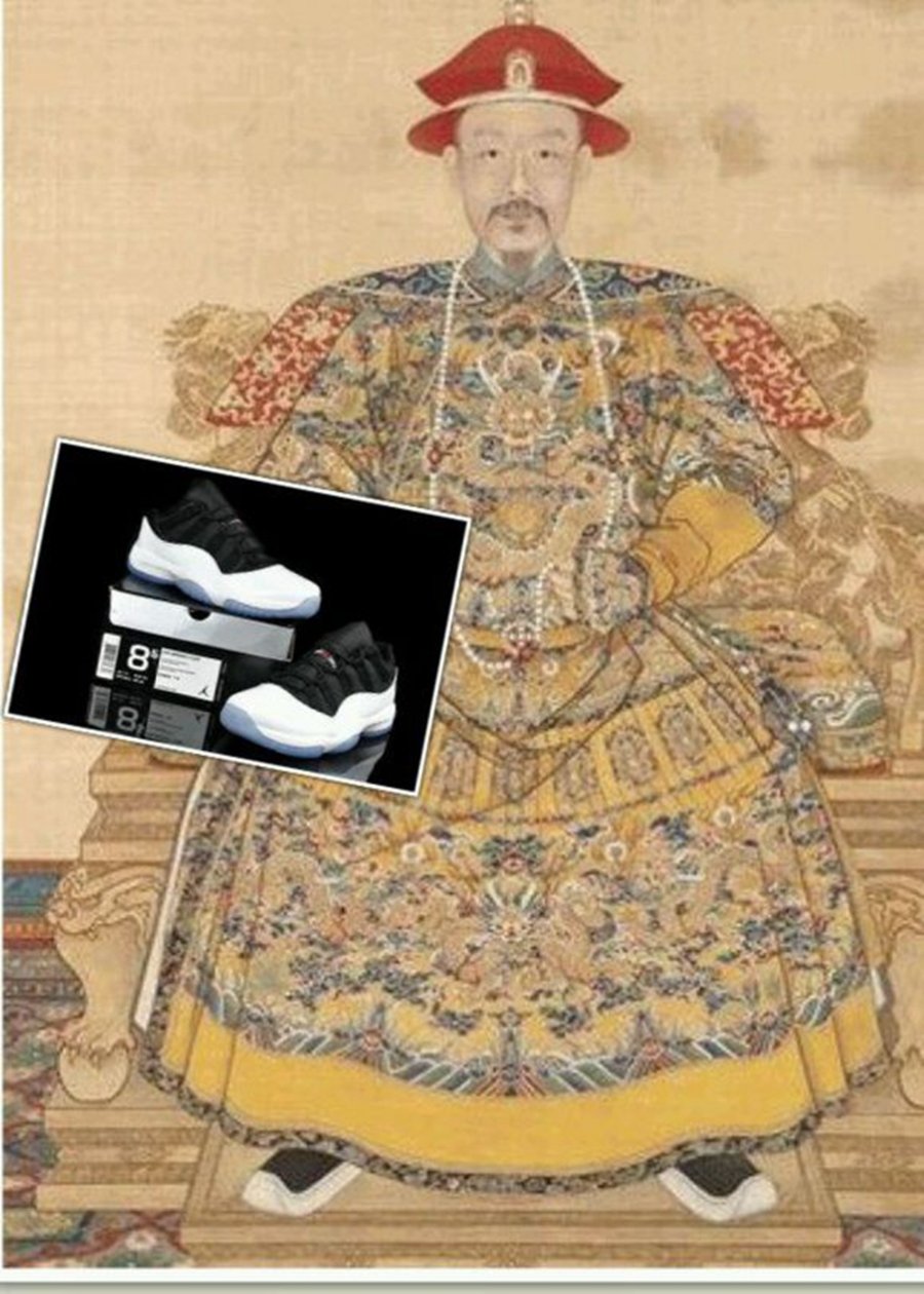 作为 2013 登场的全新配色,Air Jordan 11 Low “White/Black-True Red” 以反转 “Concord” 为配色灵感。脑洞大开的天朝子民发现此鞋同康熙他老人家画像中的鞋款颜色相似,在国内也被称为“康熙”配色。Jordan Brand 本次致敬意如此走心,将康熙上朝亲着的 PE 鞋款,哈哈哈,小编真的编不下去了。。。