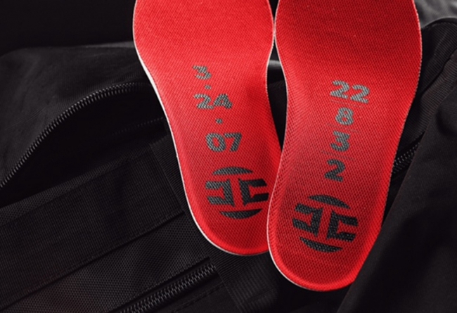 “Pioneer” 所蕴含的奥秘也在此双鞋垫上得以印证,哈登带领校队夺冠的日期(07 年 3 月 24 日)被标注在左脚位置,而右脚则呈现出当天个人的比赛数据(22 分、8 篮板、3 助攻、2 抢断)。