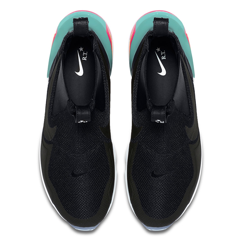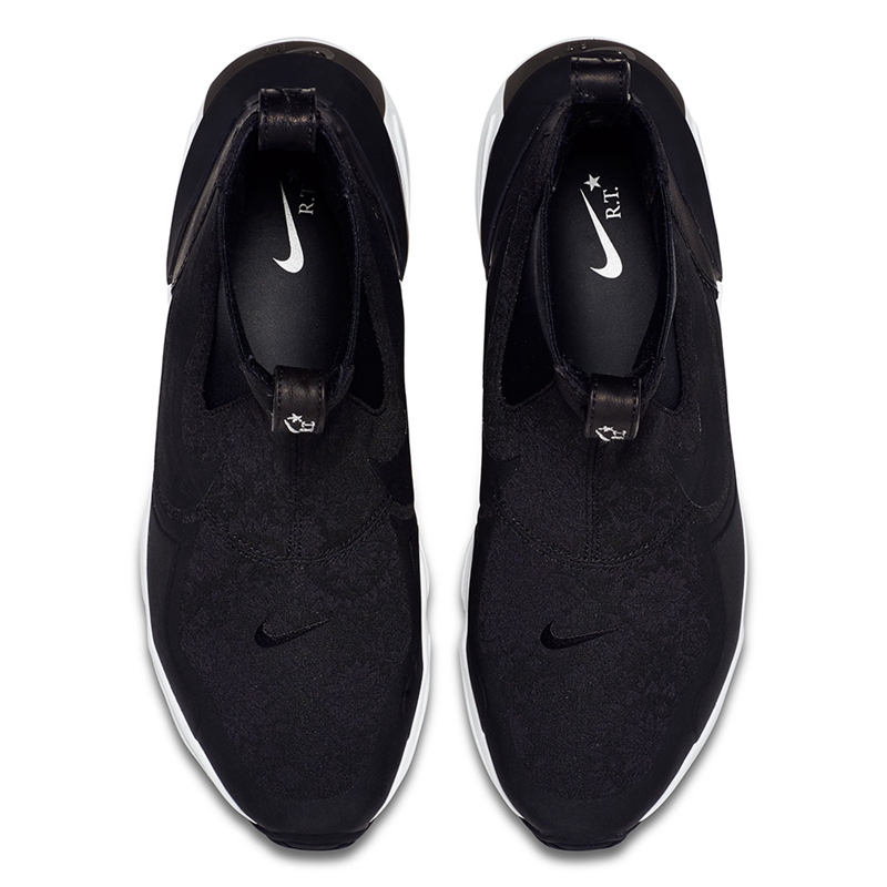另一双全黑配色的 Air Zoom Legend 则采用了麂皮打造鞋面,鞋面上的花卉暗纹颇有巴西沙滩风情,细节精致。鞋舌处的 “R.T.” 标志非常显眼,彰显着此次联名的身份。更是搭配有防尘袋,带来全方位的贴心体验。