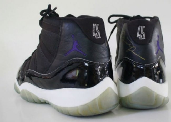 缝制的 45 号代替了之前胶印的 23 号,不仅更有质感还不易磨掉。同时当年乔老爷上脚的 Air Jordan 11 OG 后跟也绣有 45 号。