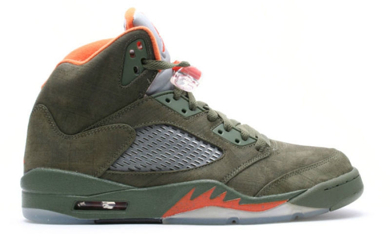 眼前这款 Air Jordan 5 “Olive Remix” 鞋面与中底以军绿为主,透出满满的军事硬汉风范。橙色内衬与其他细节带来亮眼的视觉效果,最后以水晶外底收尾,简洁又极具质感。这款配色让人想起天价球鞋 Air Jordan 4 x Undefeated,不知道这两款球鞋之间会有怎样的联系?