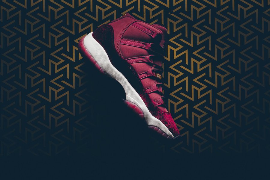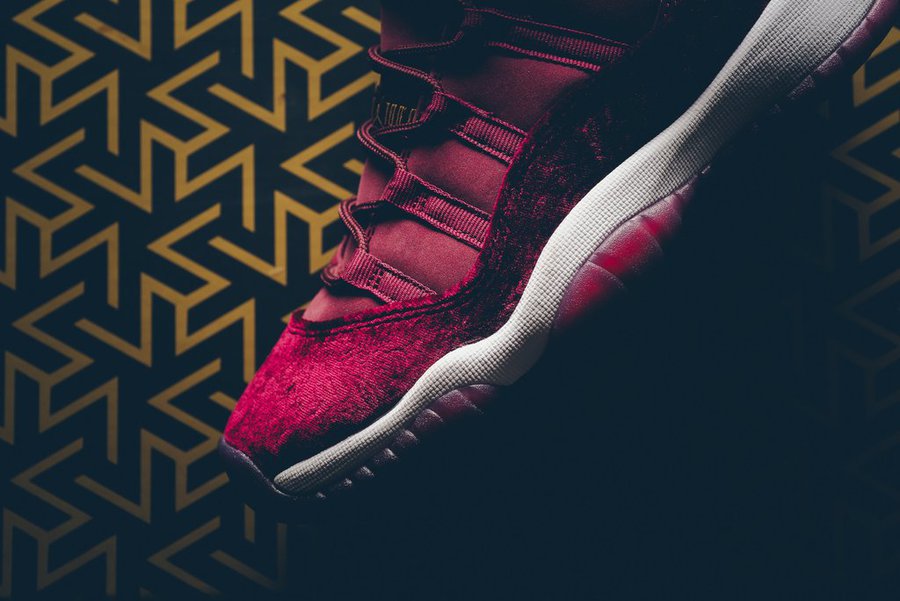 一款红丝绒 Air Jordan 11 GS “Heiress”,最大尺码到 43 码!265mm 的鞋长可以覆盖不少男鞋迷哦!