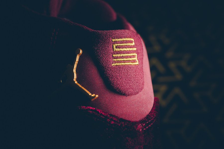 用 “雍容华贵” 来形容恐怕不为过!红金色的整体装扮,以天鹅绒材质替换漆皮,金灿灿的鞋帮 Jumpman Logo 金属配件,都让人目不暇接!