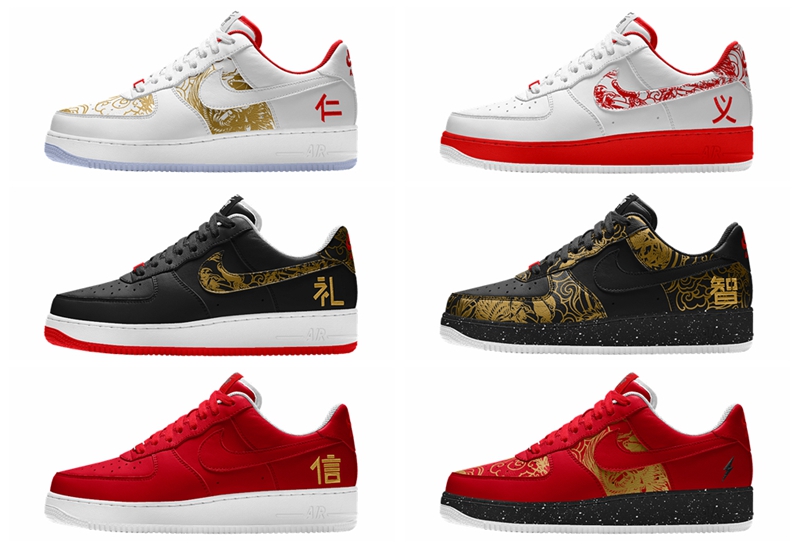 今天,NIKEiD 为我们开启了 “Chinese New Year” 的球鞋定制服务。同样选用经典的 Air Force 1 Low 为蓝本,而此番以即将到来的 2017 鸡年为灵感,将中国传统的凤凰图案与代表着中华美德的标志性文字加入到定制选项当中。不仅可以选择球鞋的主体颜色及花纹,更可将鞋身的每个细节打造成你心目中的样子。