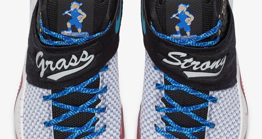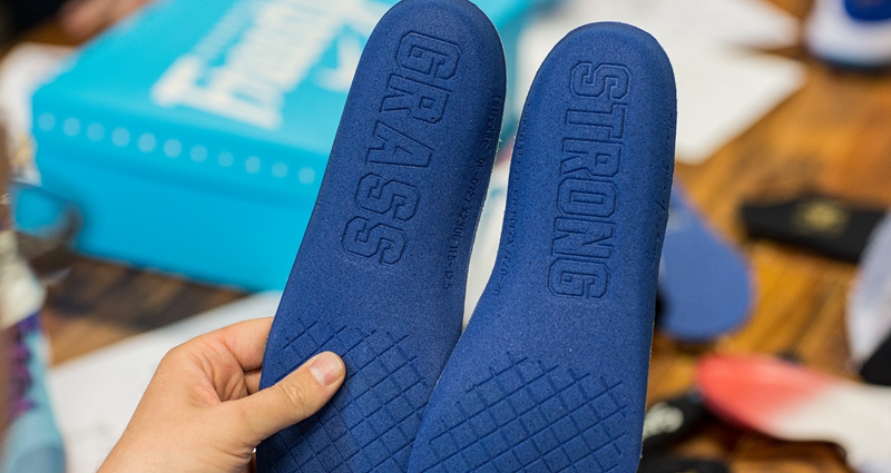 鞋身显眼的魔术绑带上,分别显示出 Grass 和 Strong 口号,以此来鼓励周围的家人、朋友。