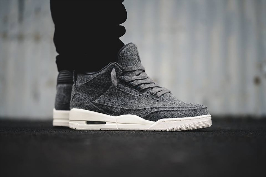 羊毛面料在今年的 Air Jordan 经典鞋型上大放异彩!此番又选用了经典的 Air Jordan 3 三代鞋型,继 Cyber Monday 的黑白简约之后,再度呈现一款灰白配色的新品。 这款 Air Jordan 3 “Wool” 以独特的面料质感彰显了十足的时尚气质,无疑是跨界时尚的又一成功尝试。 目前已经登录 Nike 中国官网发售,售价为 ¥1399 RMB,点击查看详情。 货号:854263-004