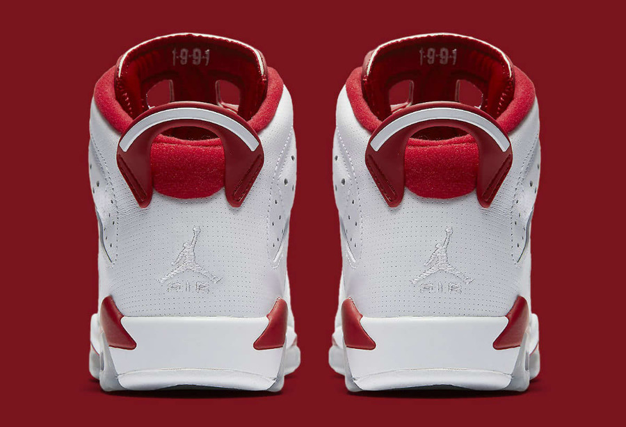 或许我们不应该称其为 Hare 配色,这款 Air Jordan 6 “Alternate” 被 Jordan Brand 官方冠以了 “替换配色” 的名号,将于 2017 年 3 月 11 日正式发售。 在面具鞋舌的内侧,可以看到有 1991 的字样。而清爽的浅色鞋面则呈现了精细的冲孔纹理,健身红的细节托衬,熟悉的白红装扮带来十足的运动活力感受! 货号:384664-113 发售日期:2017 年 3 月 11 日 发售价:$190