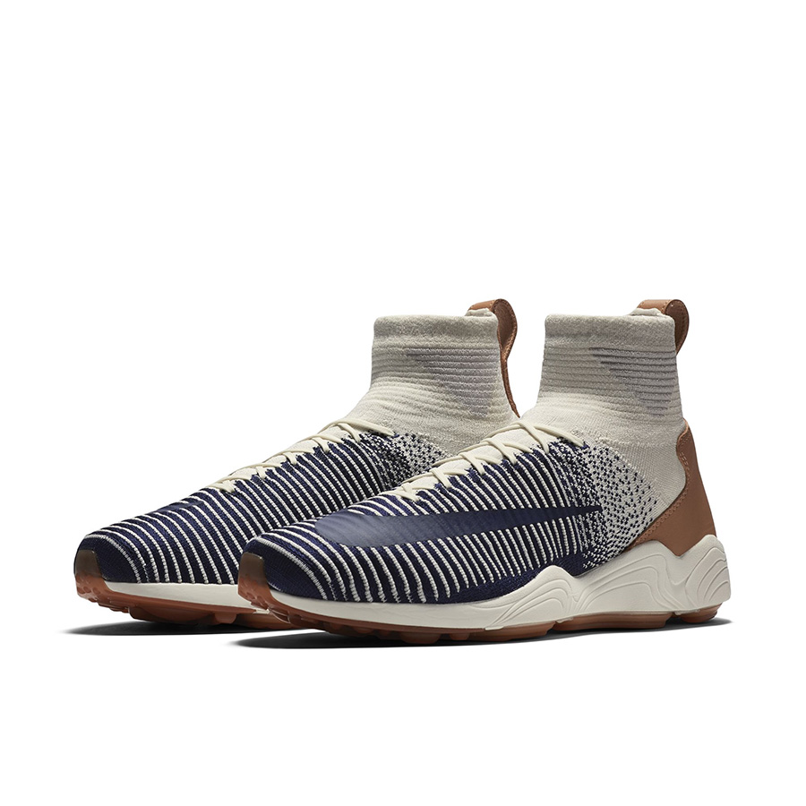 吕布二代 Nike Zoom Mercurial XI FK 以 Mercurial XI 标志性的鞋身设计融合 Air Zoom Spiridon 的鞋底,全新的战斗气质,以及全掌 Zoom Air 的加持,使其也成为了新一代的潮鞋明星! 在带来多个配色之后,眼前这款 Nike Zoom Mercurial XI FK “Sail/Navy” 则以沙色的清爽背景注入海军蓝的线条纹理,反差色的装饰效果夺目非凡!辨识度极高,想必回头率定能得以保证!无疑是横扫街头的绝佳之选!