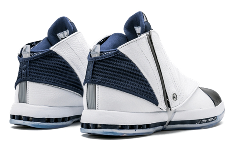 在乔帮主退役后,为赋予鞋款多种场合的适用性,Air Jordan 16 配备了独特的鞋罩设计及经典的漆皮元素,以满足飞人在场下的着装需要。