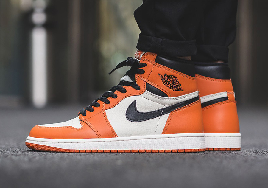 人气颇高的 Air Jordan 1 OG High “Shattered Backboard Away”,鞋面根据乔丹参加当年意大利举办一场全明星表演赛的客场球衣为设计灵感,鞋面主要以大面积橙色与白色荔枝皮,并搭配黑色细节。目前该款球鞋的售价可谓是高歌猛进像上涨!