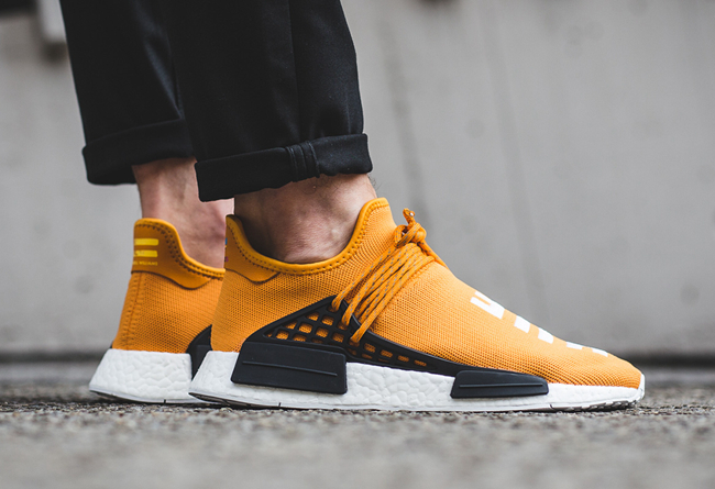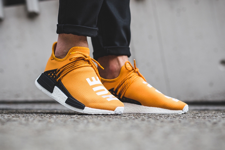 adidas NMD Human race 是菲董与 adidas Originals 联名推出的重磅产品。该系列以不同形态的“人类”词语呈现,展现出不同的视觉感受及相同的哲学理念。其中有一双以橙色主题,搭配黑色支架与白色 Boost。
