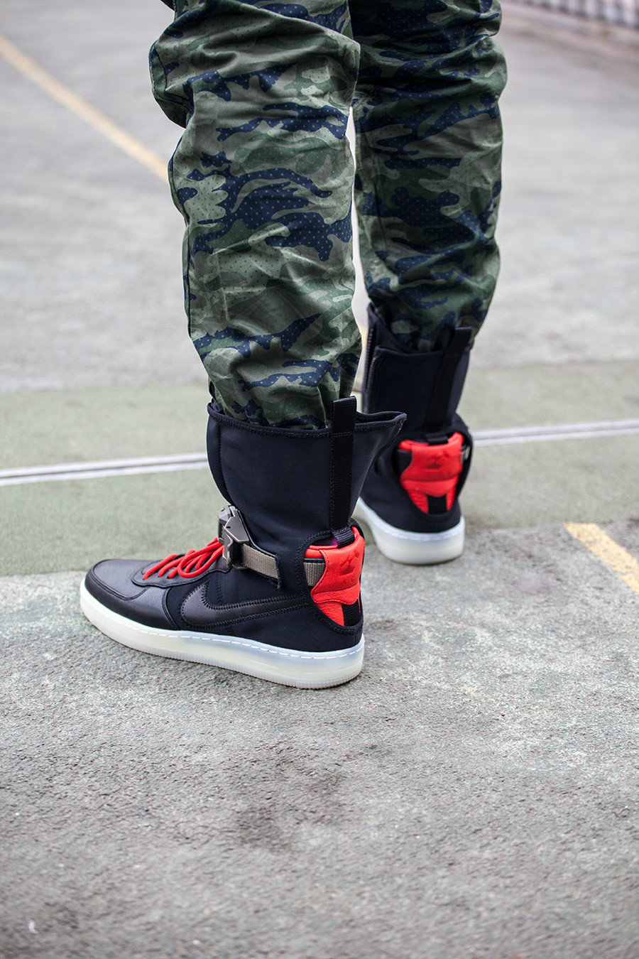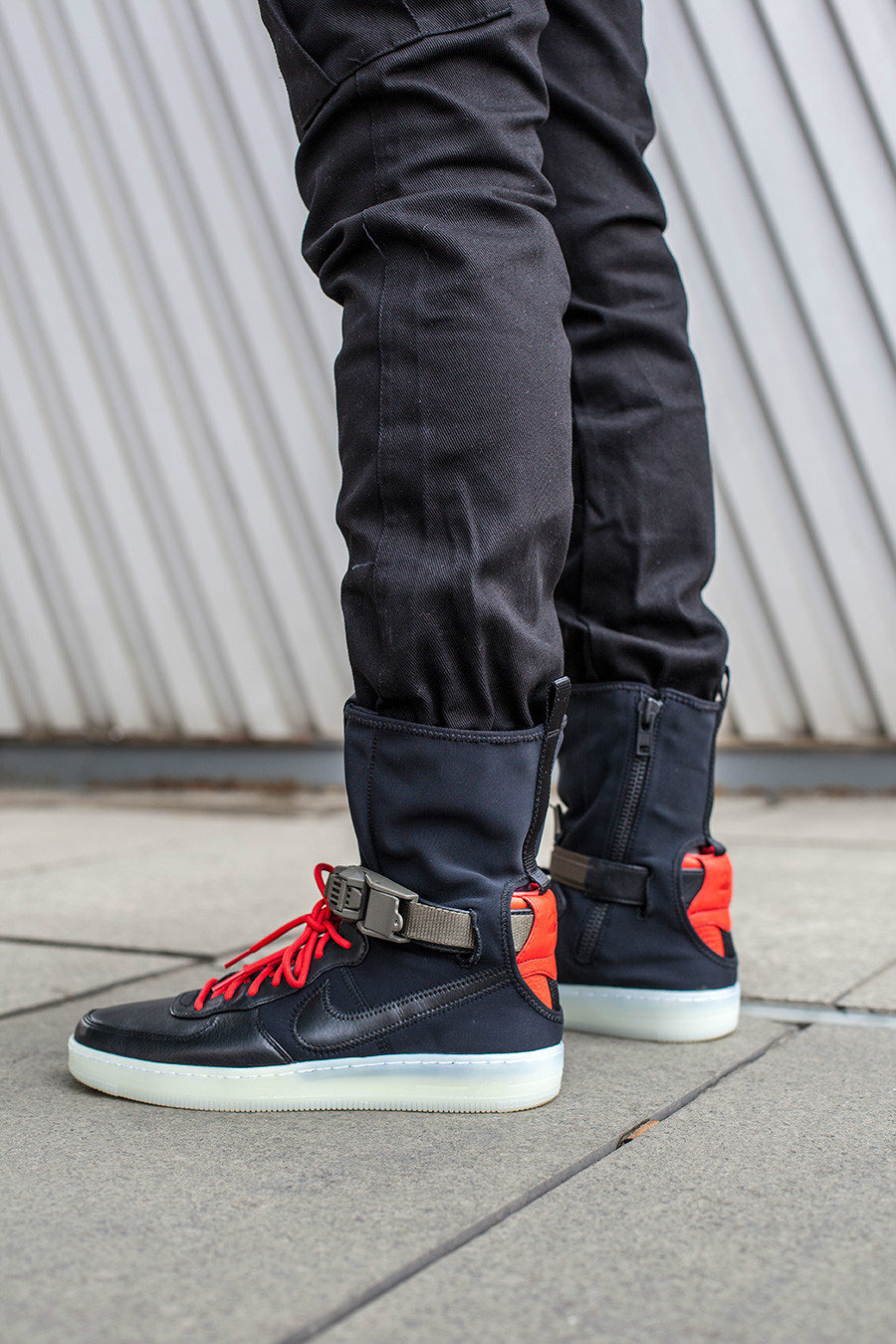 呈现了同 SF-AF1 一样的军事风范,但机能元素的融入,在使用过程中则更为贴心和便捷!同 ACRONYM x Air Presto Mid 一样,在用料上也极为奢华,同样是皮革鞋垫,鞋帮包裹和拉链内侧的皮质加持,带来奢侈品一样的体验!