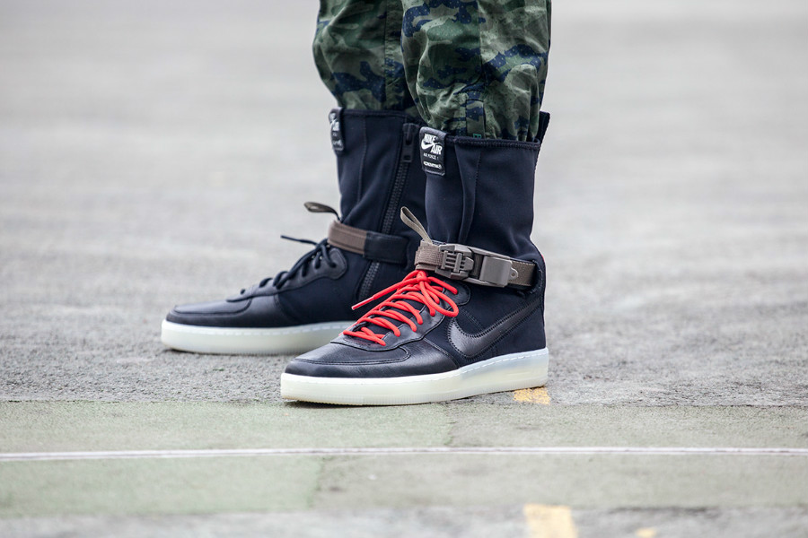 ACRONYM x Nike Air Force 1 Downtown Hi 与普通的 Air Force 1 相比鞋型修长,因为皮质极软并不用担心夹脚的问题。