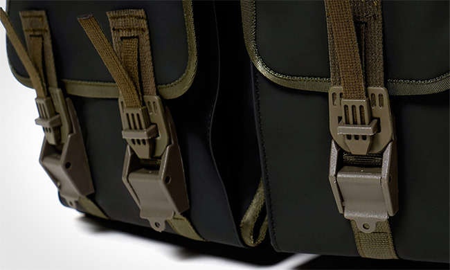 最大的亮点在于这个 3A 式锁扣系统与机能主题相呼应,这个来源于 ACRONYM 品牌的经典设计,在他们自家的邮差包上均有应用。