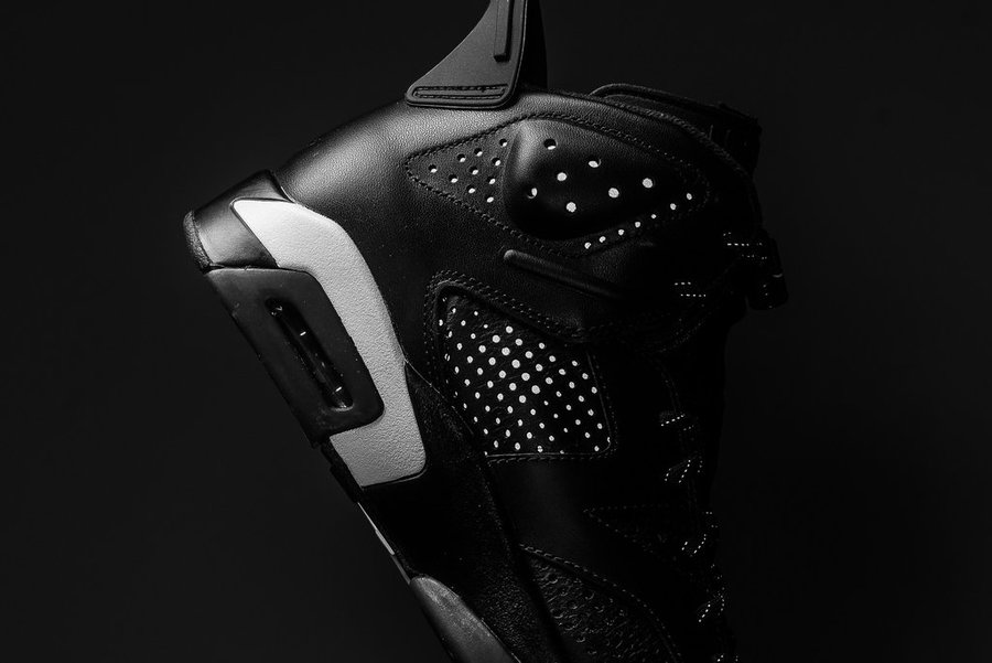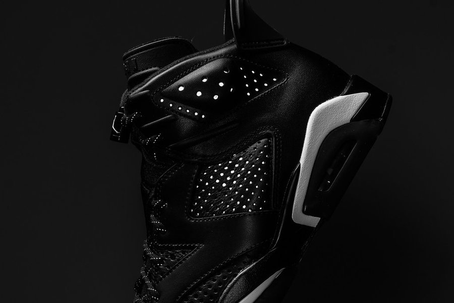 Air Jordan 6 “Black Cat” 采用冲孔皮革打造的鞋身散发出更为硬朗肌肉线条,鞋垫内的黑豹图案,彰显出该配色的专属身份,3M 反光材质的注入,则带来更加灵动的视觉感受。简洁的黑白色调在穿着方面极其百搭。