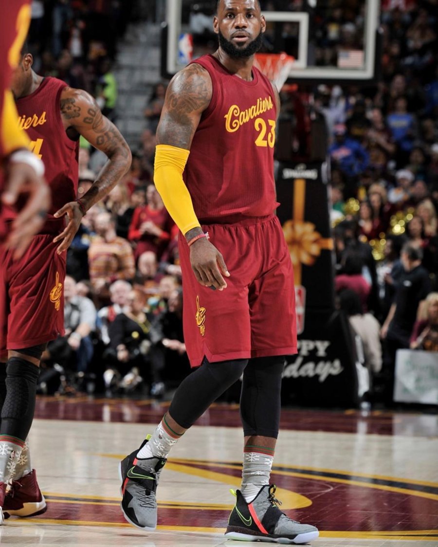 在今夜圣诞大战的焦点战之中,LeBron James 与 Kyrie Irving 联手带领骑士队一分绝杀勇士,而除了紧张刺激的比赛让我们大呼过瘾外,詹姆斯脚下的全新一代 LeBron 14 也如约而至,成为今日比赛中最大的惊喜。