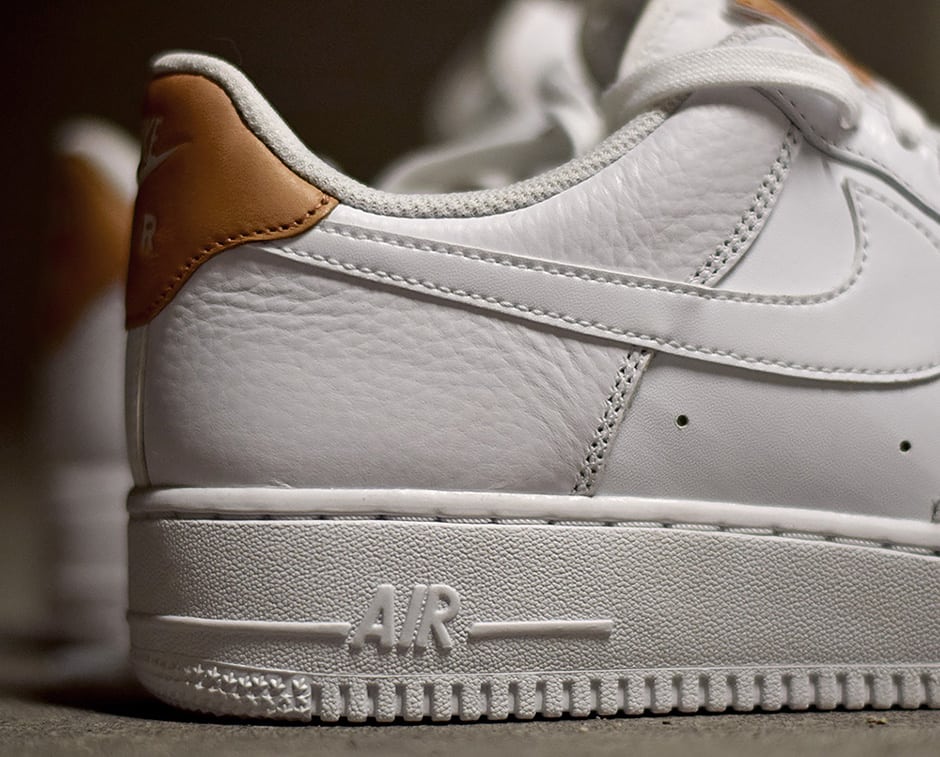 这双 Nike Air Force 1 Low LV8 "White/Vachetta Tan” 融合了多个时尚有趣的人气元素,经典的小白鞋外观,在后跟和鞋舌又注入了 Tan 色的标签,使得整体更具时尚气质。