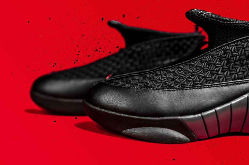 这款 Air Jordan 15 OG “Stealth” 以酷黑为主色调,搭配银色中底,迎合了 X-15 战斗机的炫酷设计灵感。鞋舌处的 Jumpman Logo 与后跟处均采用亮眼的红色呈现。编制与皮面的前卫鞋身设计,展现出硬汉干练风范。