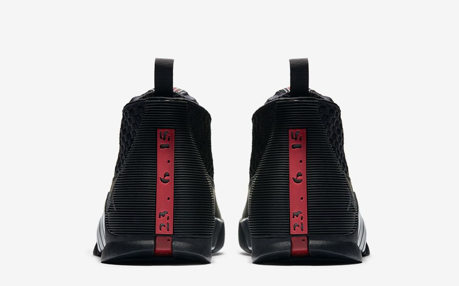 这款 Air Jordan 15 OG “Stealth” 以酷黑为主色调,搭配银色中底,迎合了 X-15 战斗机的炫酷设计灵感。鞋舌处的 Jumpman Logo 与后跟处均采用亮眼的红色呈现。编制与皮面的前卫鞋身设计,展现出硬汉干练风范。