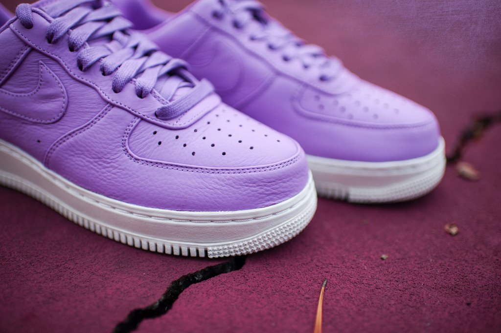 这两款 NikeLab Air Force 1 分别采用高贵的紫色与活力的黄色,鞋面均是由高级纯色皮革打造,后跟无标识 3M 反光材料也是鞋身一大亮点。特殊的鞋垫设计采用内嵌式 Phylon 鞋垫结合 Air-Sole 气垫,缔造轻盈灵活的缓震效果,加上透明的水晶大底也展现出与众不同的设计风格。