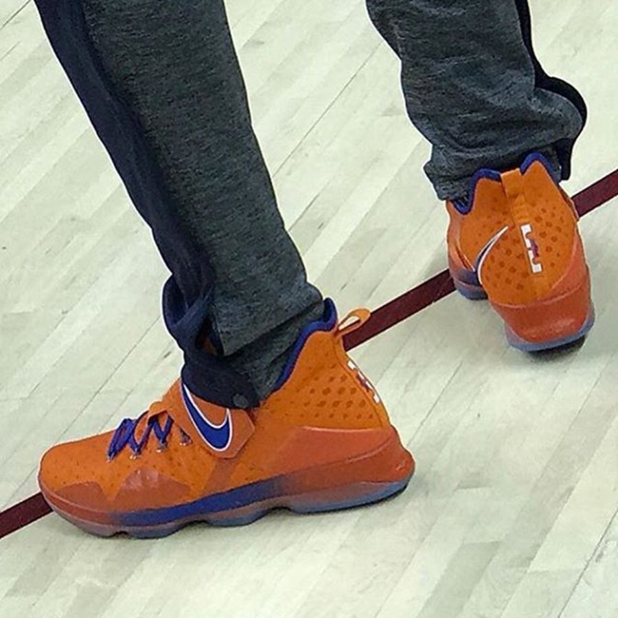 在对阵公牛的比赛中,骑士队迎来了 Hardwood Classics 复古球衣夜,全队都以蓝橙配色的 CAVS 经典装扮出战。 而 Nike 也为詹姆斯特别准备了 LeBron 14 “Hardwood Classics” PE 来搭配复古球衣,迎合这个特别的主题。 亮眼的橙色辅以渐变的皇家蓝点缀,呈现出满满的活力气氛。 此前,全队上下还特意为复古之夜专门拍摄了一部宣传视频,不知看完后,会不会觉得辣眼睛?你又都能认出谁是谁么? 相关内容: >> Cavs 复古球衣配色 Soldier 10 & Kyrie 2 正式亮相