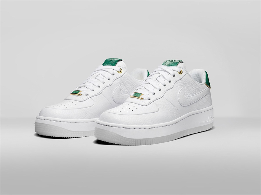 鞋型方面,男款选用了极为轻质的 Nike Air Force 1 Ultra Low,女款则选用了加高中底的 Nike Air Force 1 Upstep,男女款在同一主题之下,有着略微的不同,分别展现了清爽活力和秀丽静雅。