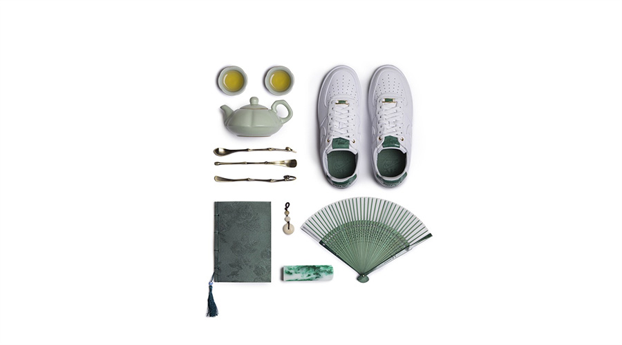 此番以 Jade 玉石作为中国元素的完美承接,无论是温润的绿色加持,还是 “金镶玉” 的双色点缀,在白色鞋身上都亮眼非凡。