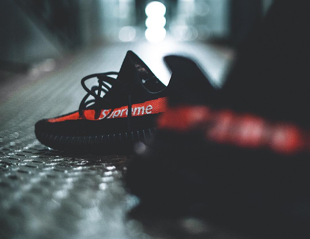 近日,有球鞋玩家将 Yeezy Boost 350 V2 修改成 Supreme 联名款式,把鞋身的 SPLY-350 字样图改成 Supreme 字样,并重新刷上了鲜红色的油漆条。