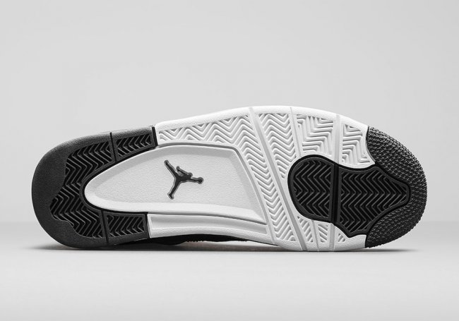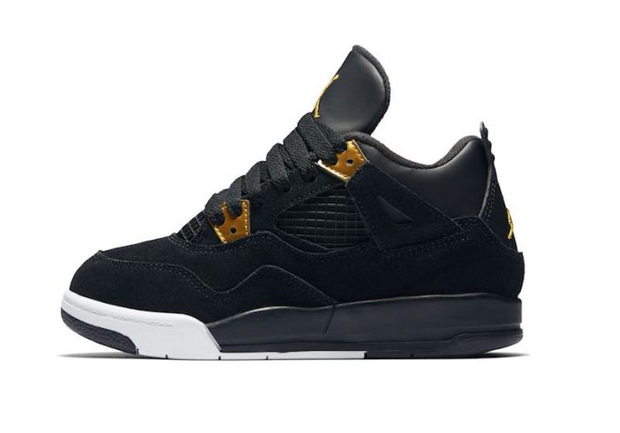Air Jordan 4 “Royalty” 鞋身采用磨砂质感的黑色牛巴戈打造,4 代特有的篮网状鞋带扣与后跟 “Jumpman” 以电镀金色打造,最后辅以一席白色中底衬托,黑金的搭配展现出奢华气息,如此质感让人难以抗拒!
