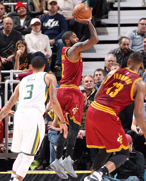在昨日对阵爵士的比赛中,欧文上脚全新配色 Nike Kyrie 3。 此番这款 Nike Kyrie 3 “Wolf Grey” PE 鞋身以灰色为主,金属色的 Nike Swoosh 也是极其亮眼,鞋舌上荧光绿色的个人 Logo 彰显出球鞋身份。 这款 Nike Kyrie 3 “Wolf Grey” PE 与 Nike Kyrie 1 “All Star” 有着几分相似,目前尚未公布发售信息。