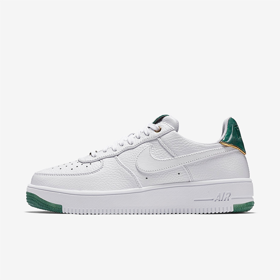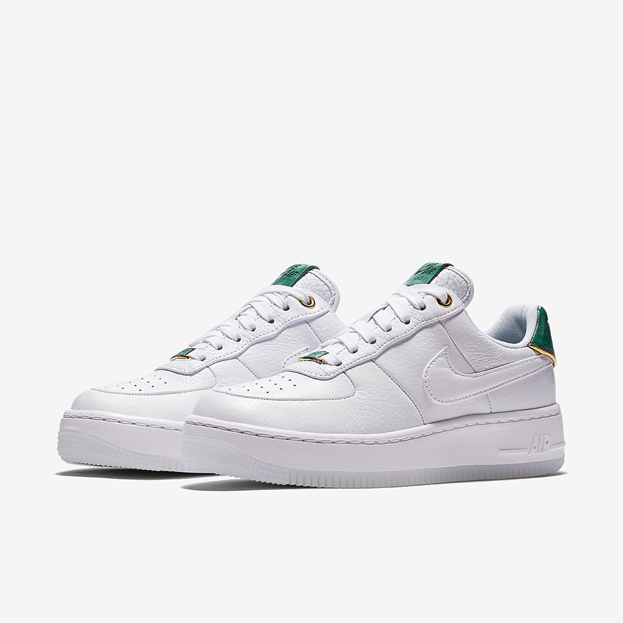 今年的 “金镶玉” 则在寓意、视觉和鞋型选择上更加讨好!采用了白色背景呈现玉石绿和金色细节,男款 Air Force 1 UltraForce 鞋型更为轻便舒适,而女款的 Air Force 1 Upstep 则以加高的鞋底凸显时尚气质。